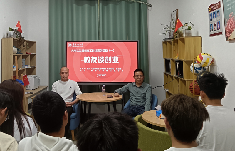 为进一步加强就业创业教育工作,激励同学们努力学习,励志成才,4月26日下午4点,六合彩澳门 生涯教育工作坊系列活动校友谈创业在好“室”光、“化”家常学生服务站举办。2010届校友、芜湖诺威化学技术有限公司总经理吴杰与同学们分享了自己的创业经历和感悟,活动由张宁主持。