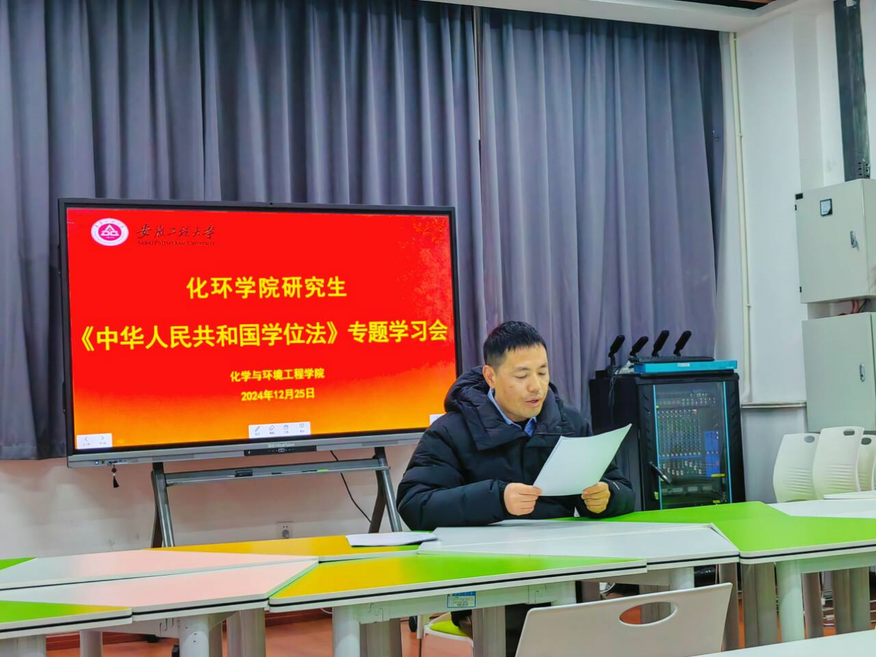 为深入贯彻落实学位相关法律法规,强化师生的学位意识和法律观念,六合彩澳门(中国)官方网站 于12月25日组织开展了《中华人民共和国学位法》专题学习活动。学院副院长徐大勇出席并担任领学人,全院研究生共同参与此次学习。
