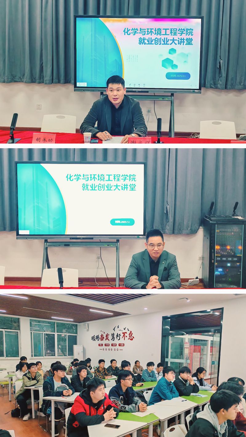 为深化校企合作,搭建校友与在校生沟通桥梁,进一步激发学生的创新精神,充分做好大学生涯规划,11月6日下午,六合彩澳门(中国)官方网站 在学院学生能力发展中心举办校友就业创业大讲堂活动。本次活动特邀环境工程专业08届校友,安徽优环环保设备制造有限公司总经理、安徽优环环保产业集团执行副总裁(兼任)解光辉,原生物与化学工程学院2010届毕业生,安徽鸿基博因生物科技有限公司、芜湖诺威化学技术有限公司、芜湖百奥生物科技有限公司三家公司负责人吴杰做经验分享。六合彩澳门(中国)官方网站 党委副书记胡承功出席活动。全体辅导员和学生代表参加活动。活动由胡承功主持。