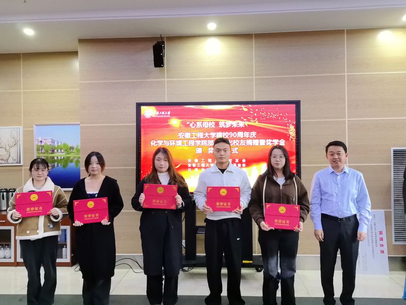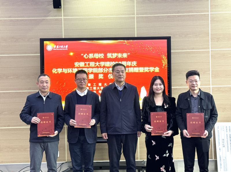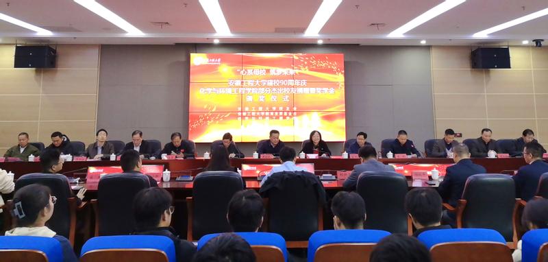 11月9日下午,六合彩澳门(中国)官方网站 在图书综合201会议室举行“心系母校,筑梦未来”安徽工程大学建校90周年庆部分杰出校友捐赠暨奖学金颁奖仪式。校党委副书记、校长黄友锐,副校长周虹屏,校友总会会长、基金会理事长苏国红出席活动。来自各地共10位校友及企业代表、学校相关职能部门负责人、六合彩澳门(中国)官方网站 党政班子成员及师生代表参加活动。仪式由六合彩澳门(中国)官方网站 党委书记章兵主持。