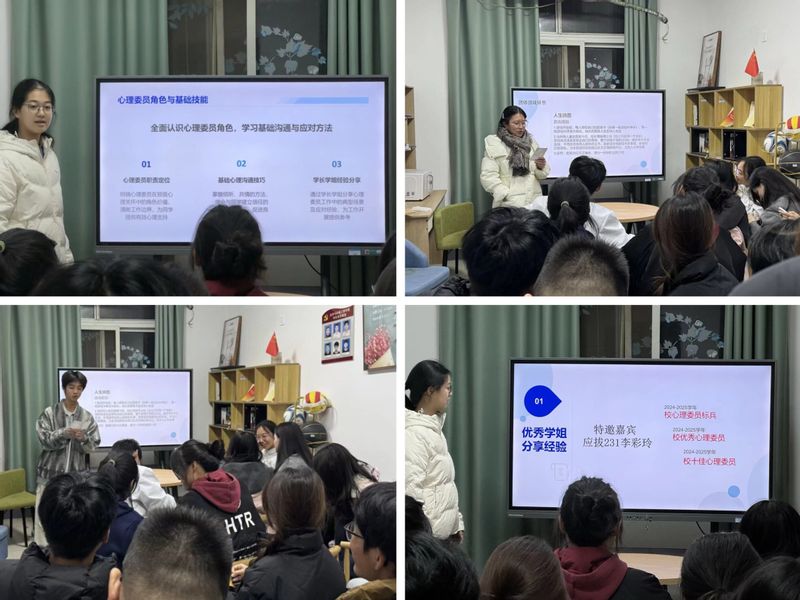在经验分享环节,应拔231李彩玲作为高年级学生代表进行现场交流。她结合自身工作实际,分享了在心理委员岗位上积累的宝贵经验和具体做法,内容务实、案例生动,为在场同学提供了可借鉴的工作思路与方法,现场气氛专注而融洽。