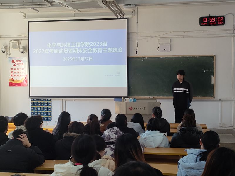 会上,现场还播放了多位学院优秀毕业生上岸学子的经验分享视频。他们真诚分享了自身备考心路历程,为学弟学妹们加油鼓劲,帮助2023级学子搭建起系统全面的升学就业指导框架,更以“青年化学+”精神凝聚起奋进合力,帮助全体学子进一步明确努力方向,为扎实备战2027年考研及科学规划未来发展奠定了坚实基础。